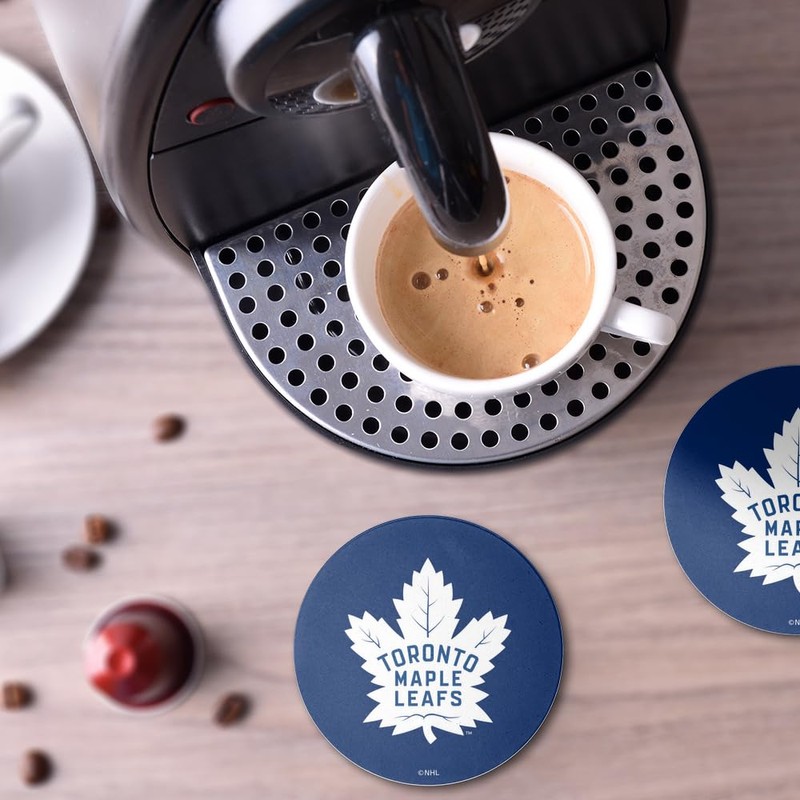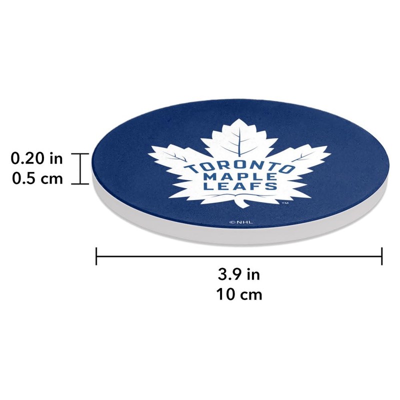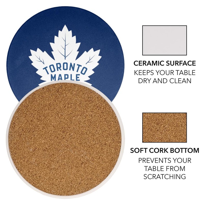 Toronto Maple Leafs Logo Round Ceramic Coasters, Set of 2, 3.9" Ceramic Stone & Cork Base
