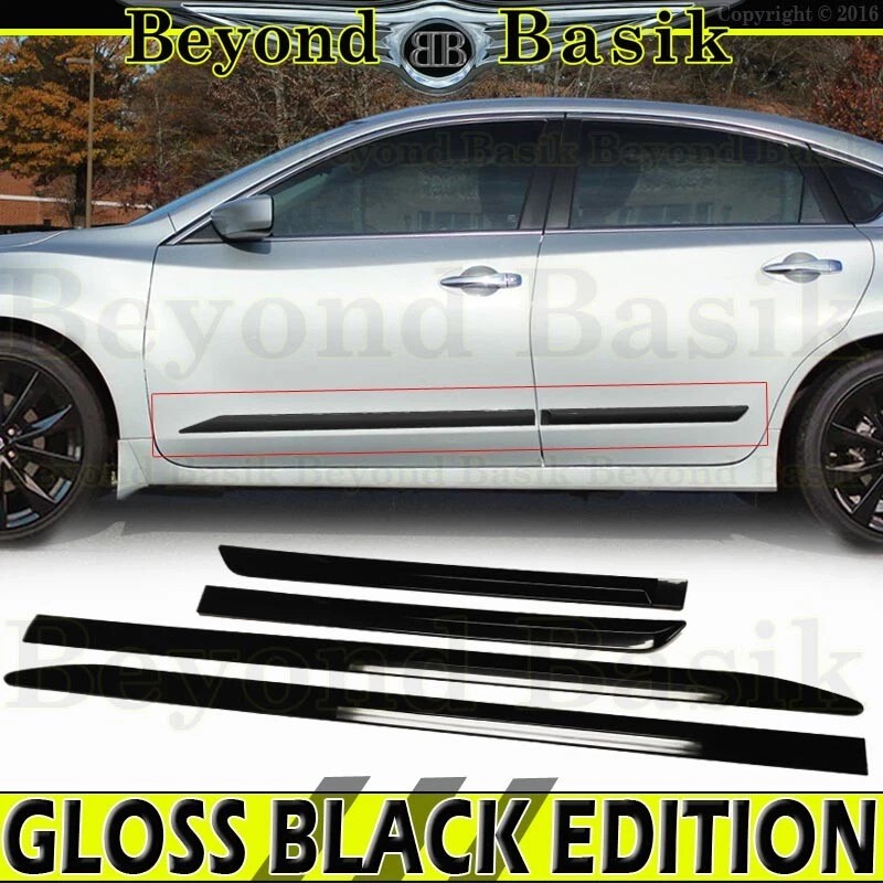 Torox Fits 2013-2018 Nissan Altima GLOSS BLACK Side Door Body Side Moldings OE Style