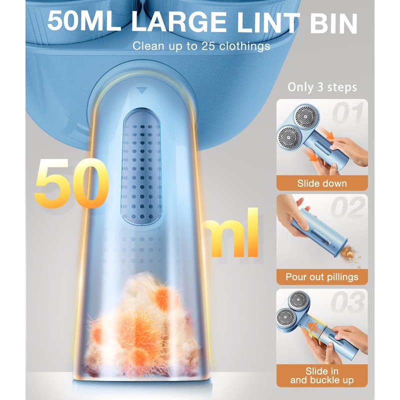 - 【Extended Battery for Better Life】The rechargable lint remover is equipped with an advanced 2000mAh lithium battery that can be used up to 3.5 hours once fully charged - more than enough time to trim the fuzz of all clothes in family. With USB-C port, it is easy to charge, and can even be charged with a computer or a power bank. If needed, it can be used plugged into the mains. Convenient and Long Lasting!