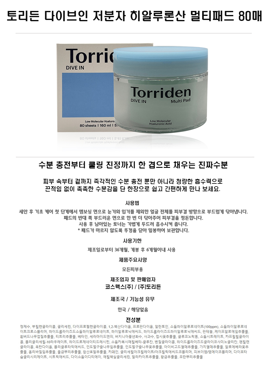 Torridon Dive-in Low Molecular Hyaluronic Acid Multi-Pad 80 Sheets / 토리든 다이브인 저분자 히알루론산 멀티패드 80매
