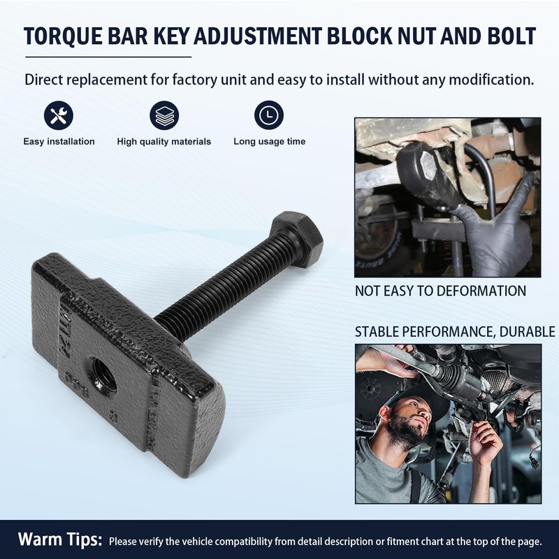 Package: 2 * Torsion Bar Key Adjuster Block Nuts with Bolts Fitment Type: Direct Replacement. Please search online video for installation