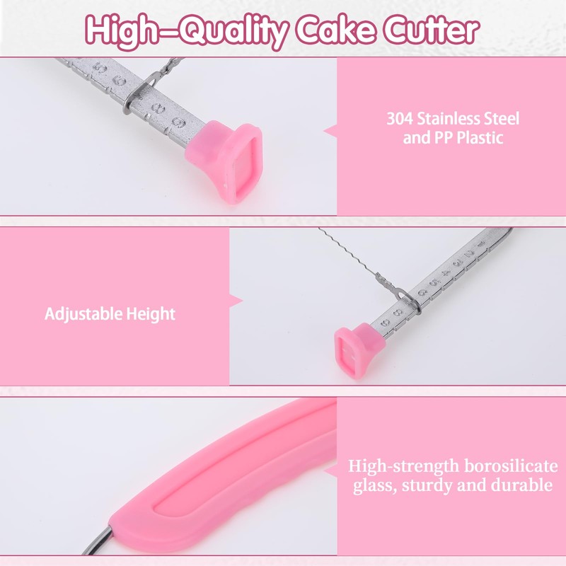 - Höhenverstellbar: Der verstellbare Schneiddraht des Tortenteiler lässt sich mühelos auf verschiedene Stufen einstellen. So können dünne oder dicke Böden gleichmäßig geteilt werden, ohne die Struktur des Kuchens zu beschädigen