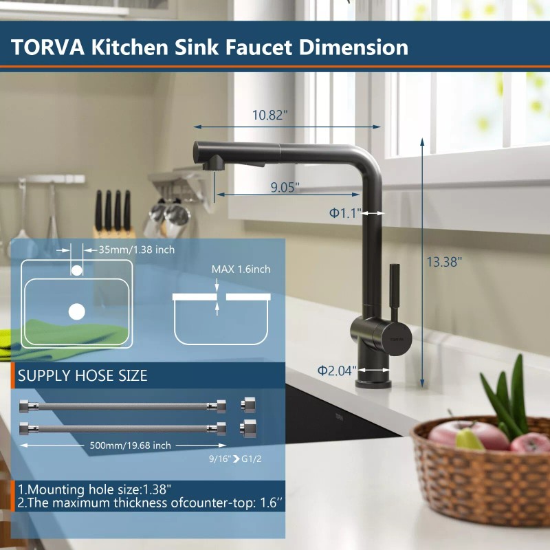 TORVA Black Stainless Steel Kitchen Faucet w/ Pull Down tap Pull Out Sprayer Handle