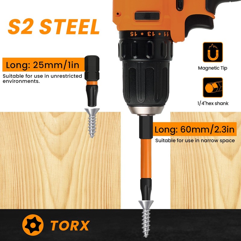 - 【Premium S2 Steel】Hakkin torx bits are made of high quality S2 steel with high hardness and wear resistance, durable for a long time service. Suitable for industrial use, home maintenance, diy project, anti-theft system etc.