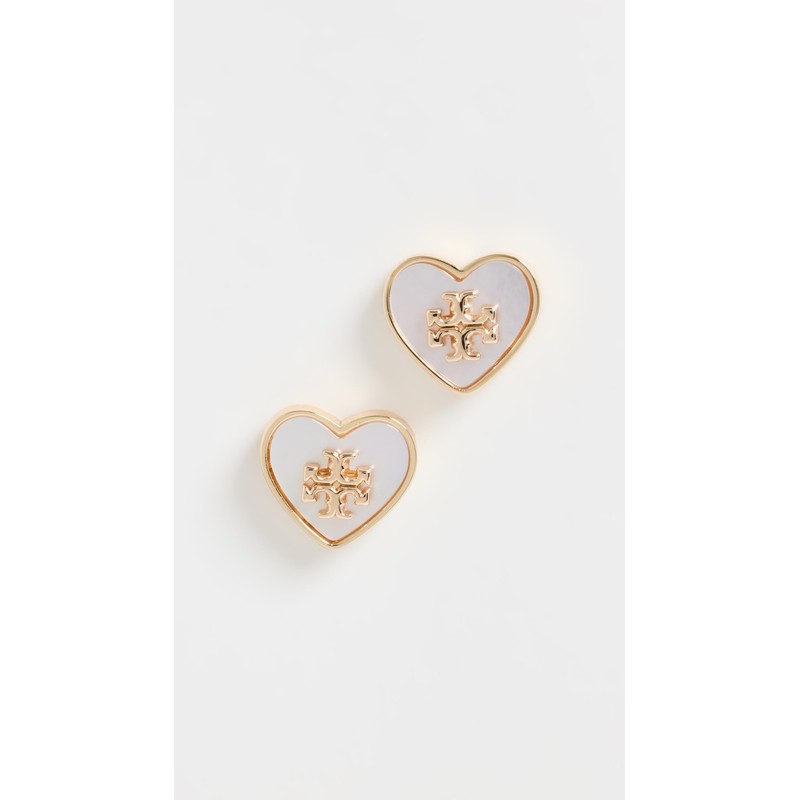 Tory Burch Women's Kira Heart Studs, Tory Gold/Mother of Pearl, One Size
