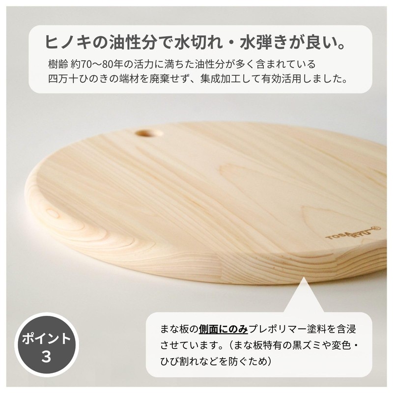 Tosa Ryu TOSARYU SHIMANTO HINOKI Cypress Round Cutting Board (S), 9.8 x 0.8 inches (25 x 2 cm), Made in Japan