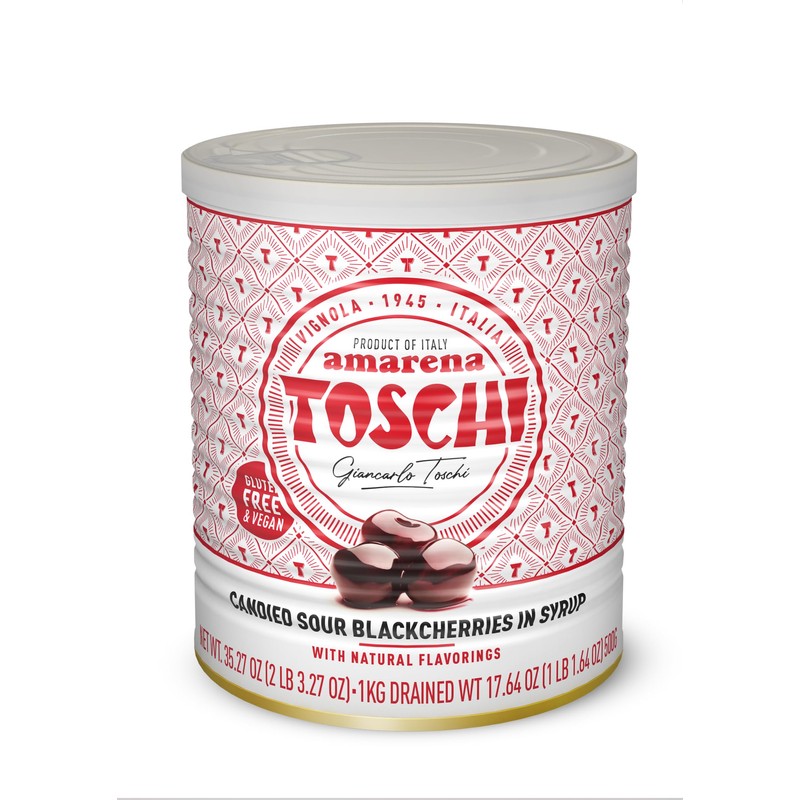 Toschi Amarena Cherries in Syrup, 2.2 Lbs (1kg) – Candied Sour Black Cherries in Rich Syrup – Italian Specialty Dessert Topping – Natural Flavorings, Non-GMO, Vegan & Gluten-Free