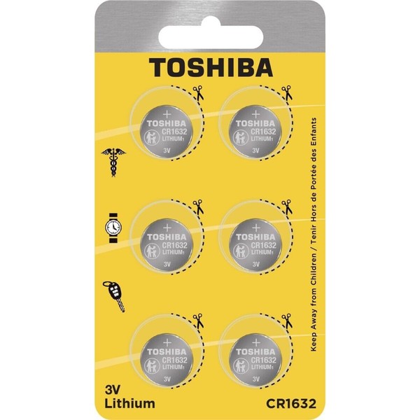 TOSHIBA CR1632 3V Lithium Coin Cell Child Resistant Blister Package (6 Batteries)