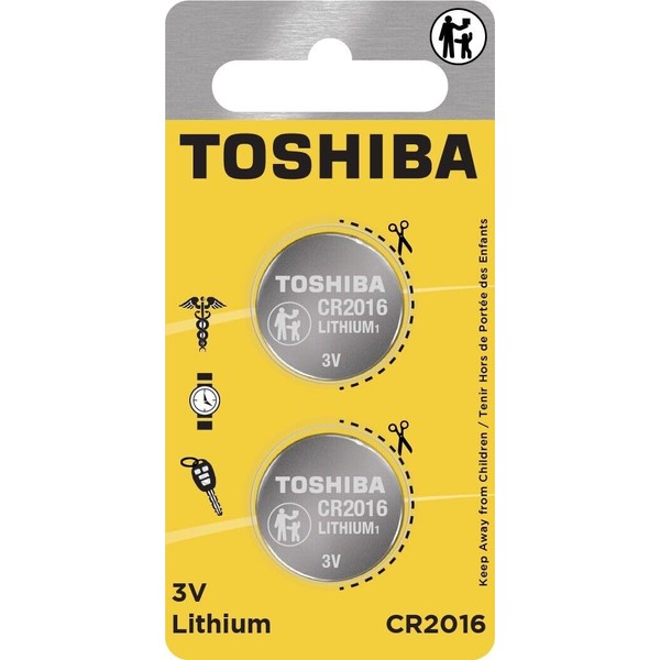 TOSHIBA CR2016 3V Lithium Coin Cell Child Resistant Blister Package (2 Batteries)