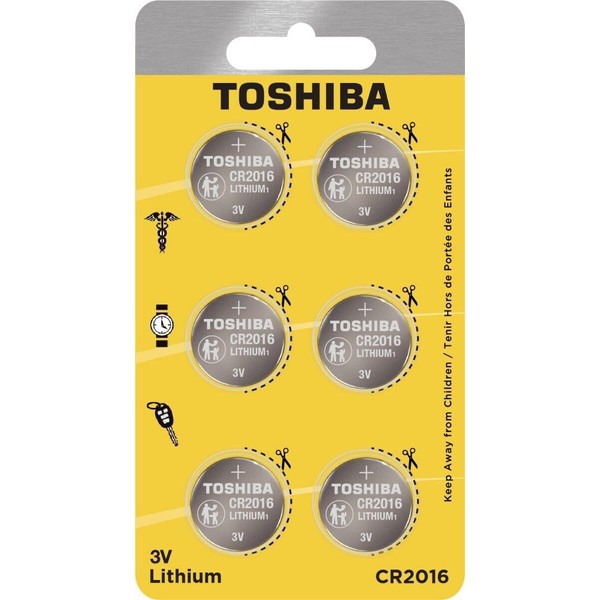 TOSHIBA CR2016 3V Lithium Coin Cell Child Resistant Blister Package (6 Batteries)