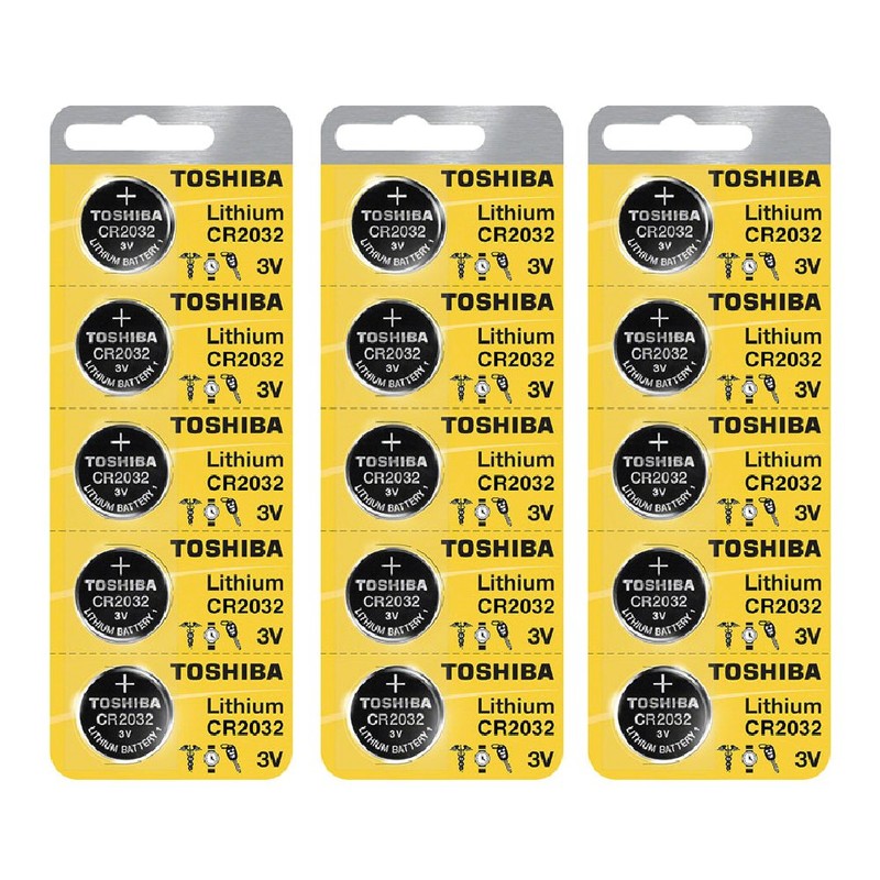 Toshiba CR2032 Battery 3V Lithium Coin Cell (15 Batteries)