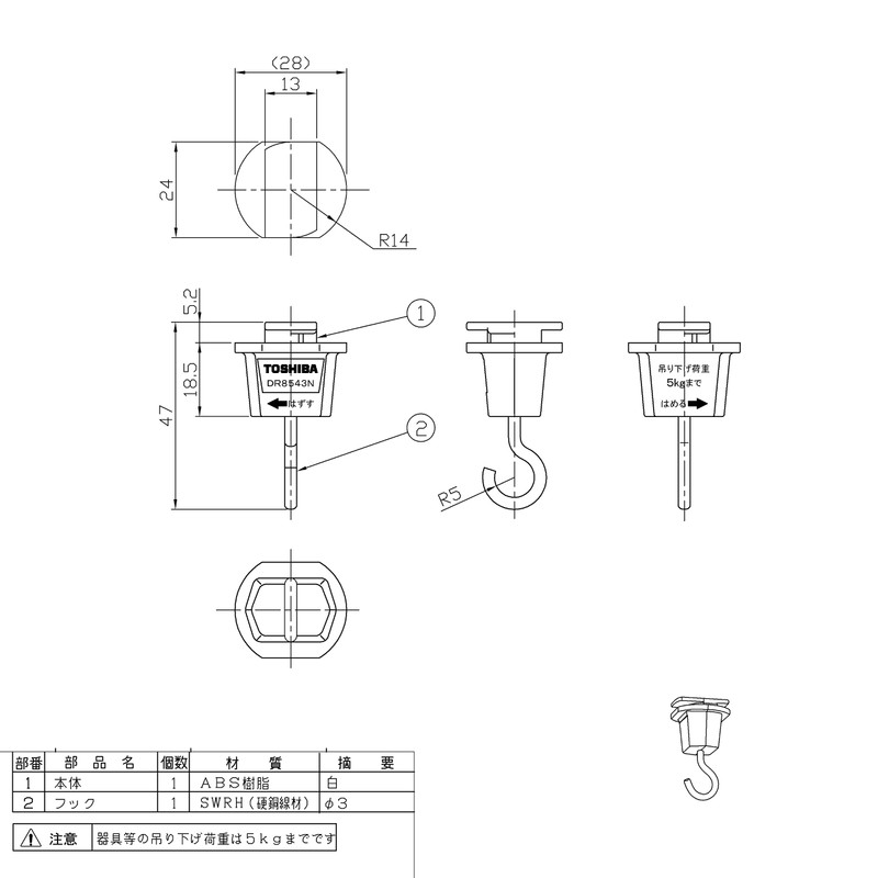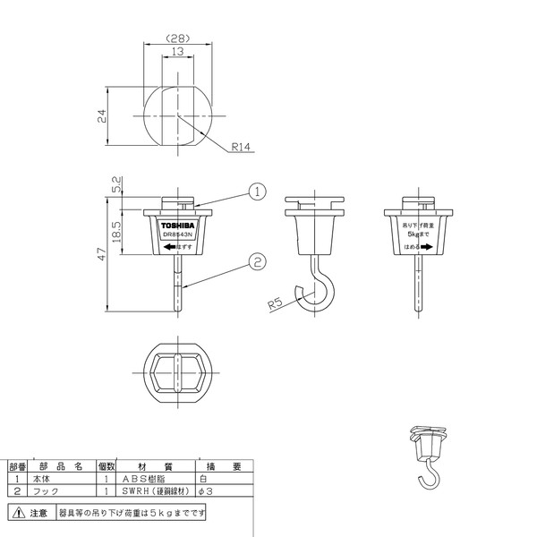Toshiba Lighting & Technology DR8543N(W) Hanging Hook, White