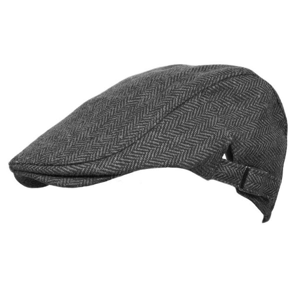 - A quality men’s tweed flat cap in small / medium (size not strap) fits 56/58cm, large/XL (size not strap) fits 58/60cm or one size with adjustable strap sizing fits up to 60cm head.