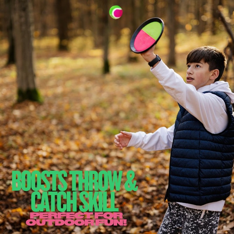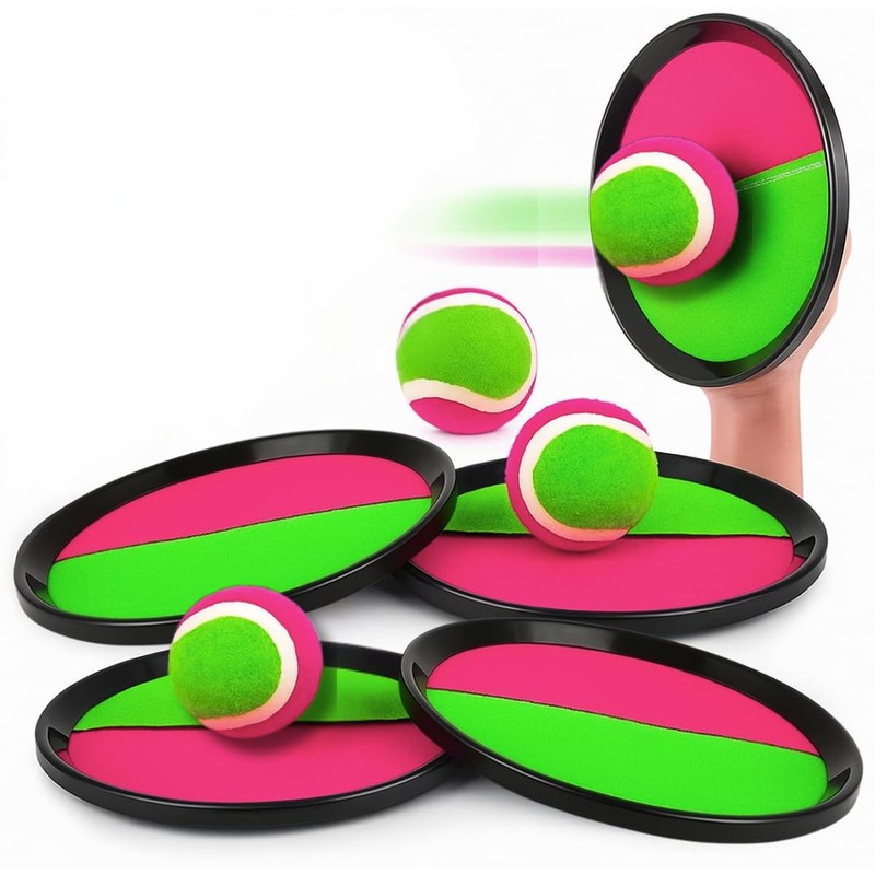 - Outdoor Fun & Skill Development: Enjoy the classic toss and catch ball game with 4 paddles & 4 sticky balls. A great way for kids and adults to improve hand-eye coordination, physical fitness and social interaction while having fun at the beach, garden, park or backyard.