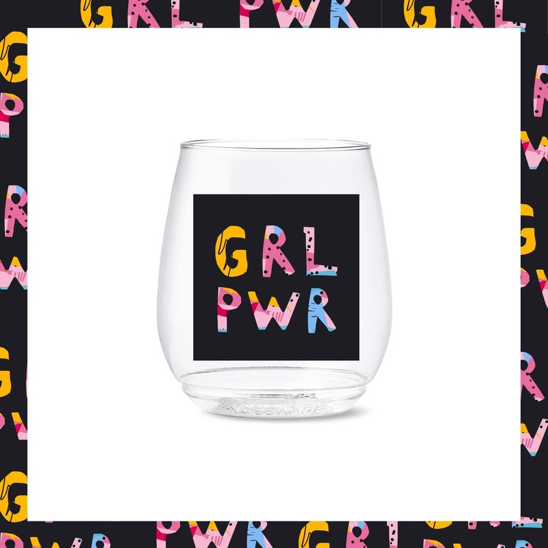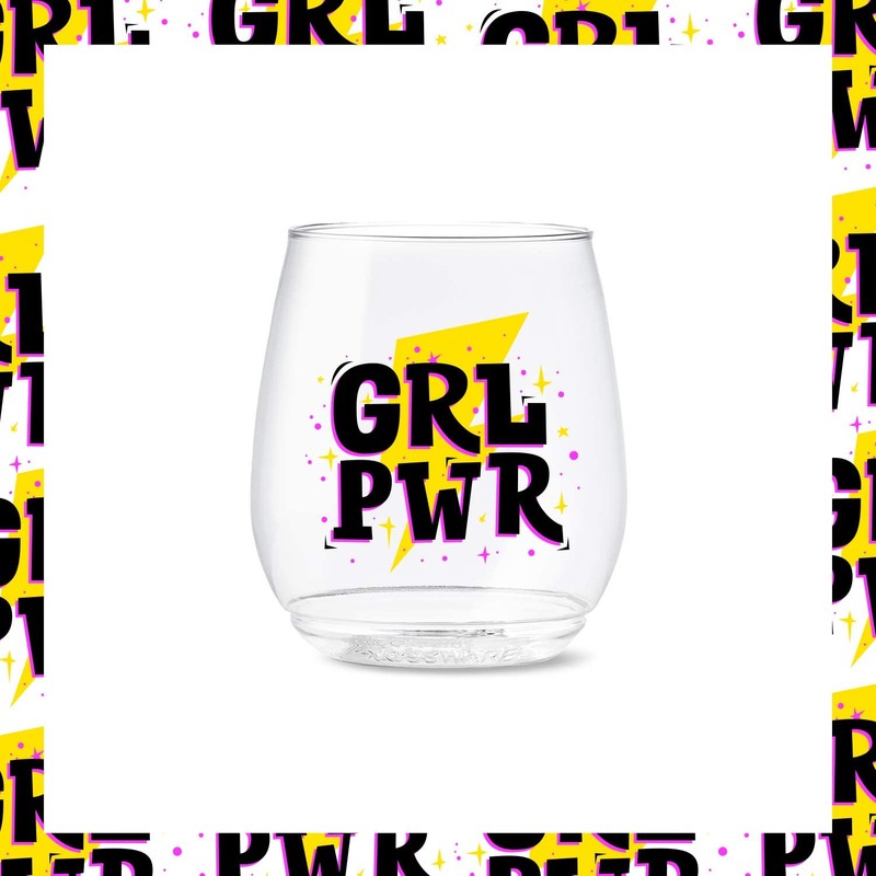 TOSSWARE POP 14oz Vino Girl Power Series, SET OF 6, Premium Quality, Recyclable, Unbreakable & Crystal Clear Plastic Printed Glasses