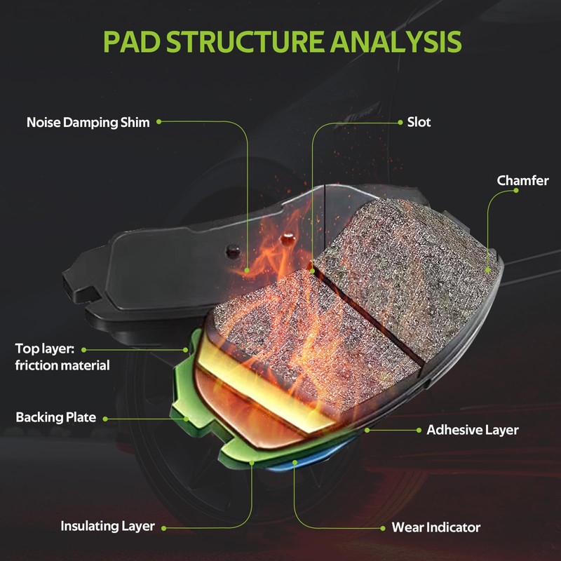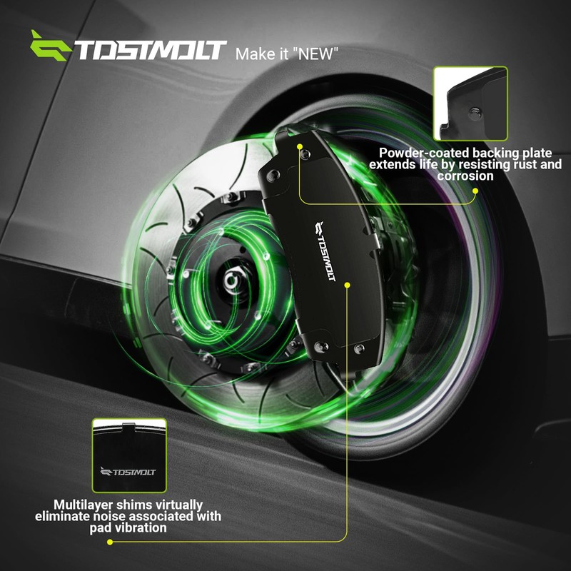 - 【High Performance & Long Lasting Life】-- Carbon fiber infused ceramic fomula provides more braking power with lower heat fade and dust; Powder-coated backing plate extends life by resisting rust and corrision. No-Hassle exchange will be offered if there is any manufacturer defect.