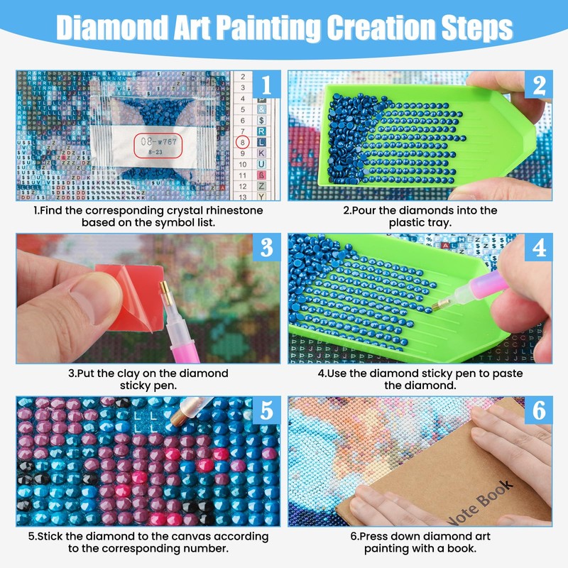- All Tools Include: Diamond painting kits include all tools,1 high-definition canvas,1 diamond tray,1 solid glue,1 corrector,2 diamond pens,5 ziplock bags and enough round diamonds,so you don't need to buy any additional tools.