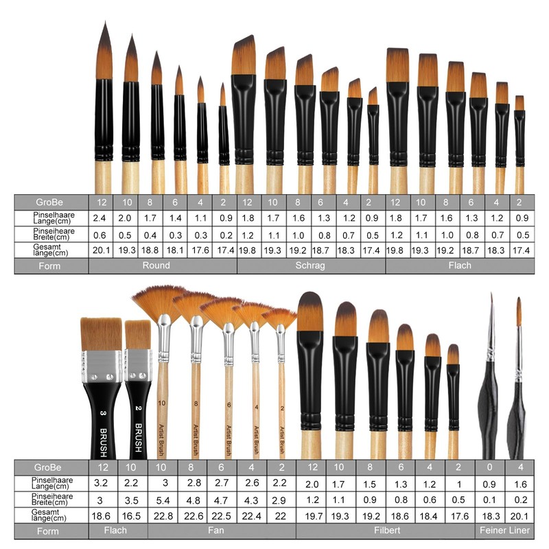 - Perfectly ergonomically designed: the robust wooden handle of the premium brush set is specially designed to the curves of your hand. The length of the handle is appropriate and comfortable to hold, so you can balance and control the brush well. So you will not be so tired even during prolonged painting.