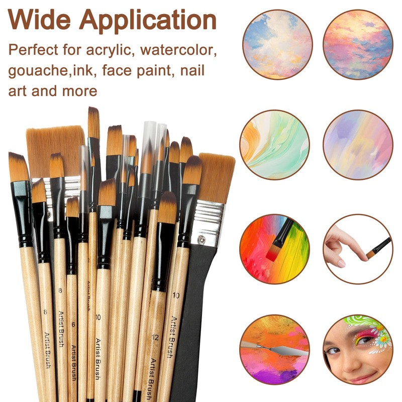 - Wide range of applications: this high-quality artist brush set with wooden handles can meet your different requirements. The brush set is ideal for painting watercolour, oil, acrylic, gouache, body, top coat, nail, miniature, model and ceramic paintings. The scraper in the set can also help you perform different oil painting work.