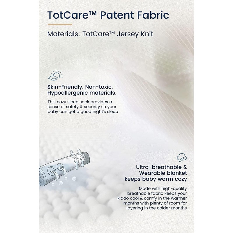 At TotAha, designed with safety and practicality is our priority and serves as the motivation in our product line. In the newborn period, parents' touch helps calm babies to sleep better. As recommended, toddler sleeping bag is a safer alternative to blanket sleepers for babies. Based on this, we designed this Superior+ baby wearable blanket to help comfort your baby and release your hand while ensuring safety. Peaceful sleep for baby, peace of mind for you.