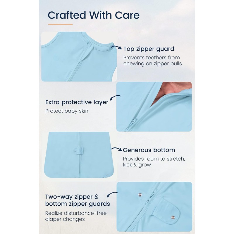 • CRAFTED WITH CARE: Up & down closures Great for middle-of-the-night diaper changes,and upgraded 2-way zipper with zipper guard at both ends prevents accidental scratching. The sleeveless design helps your baby transition from swaddling to having their arms free.