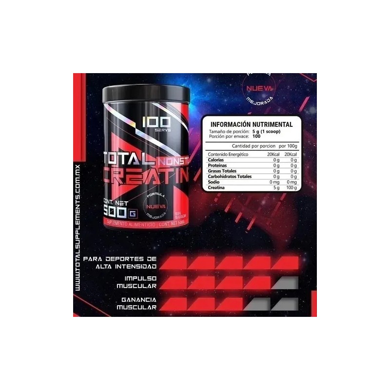 💥 TOTAL NONSTOP CREATINA MONOHIDRATADA 500 GRAMOS (100 SERVS) 💪🔥