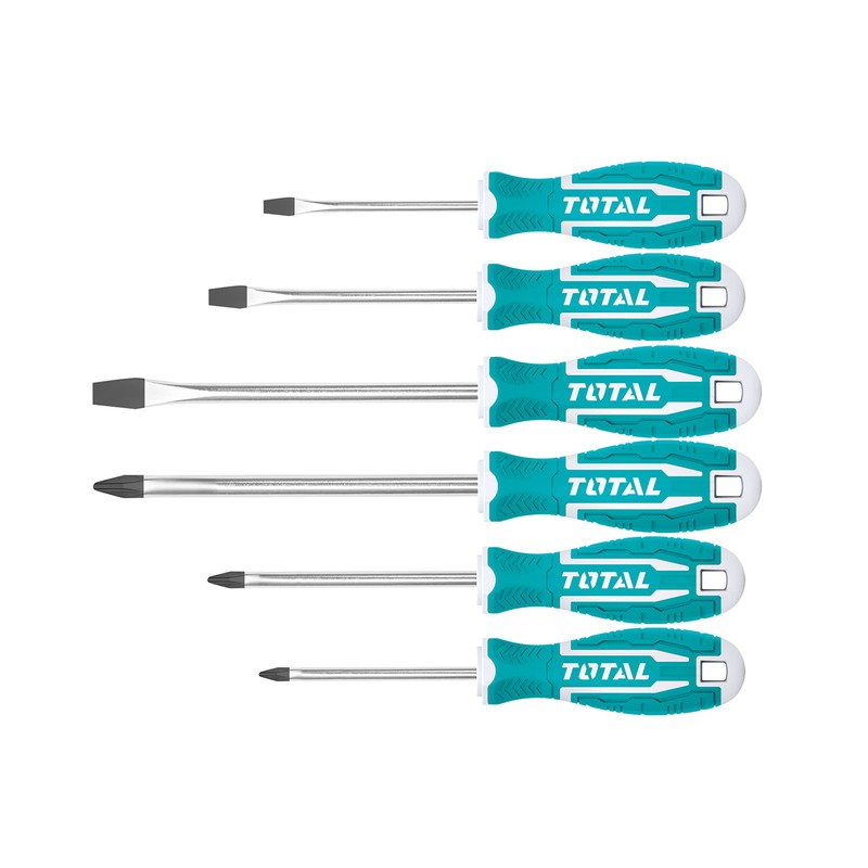 TOTAL - Screwdriver Set 6 Pieces | Chrome Vanadium Steel Blades | Ergonomic Handle | Includes SL5.5 & PH2 Variations, Alloy Steel
