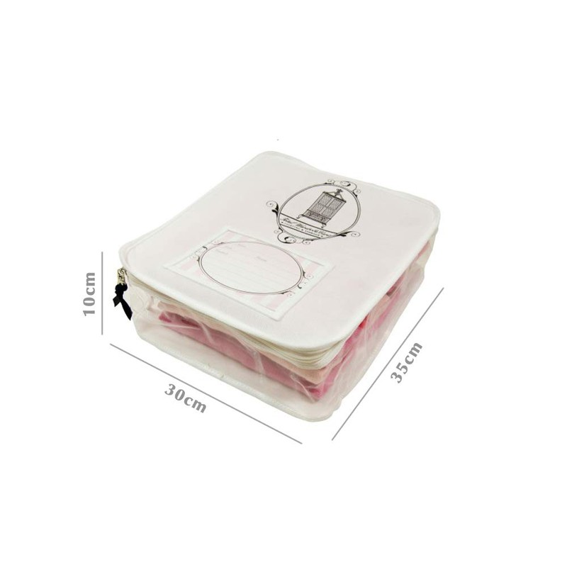 - PROTECTION: Our clothes storage bag is the perfect size for storing any type of garment. A clever zip with a ribbon pull goes around two sides making it easy to store up to ten very fine knits or up to three more chunky ones. Size of the bag: 35x30x10cm
