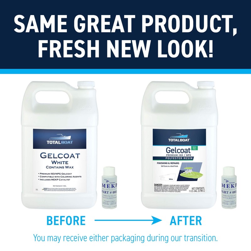 TotalBoat - 14308 Marine Gelcoat for Boat Building, Repair and Composite Coatings (White, Gallon with Wax), Packaging May Vary