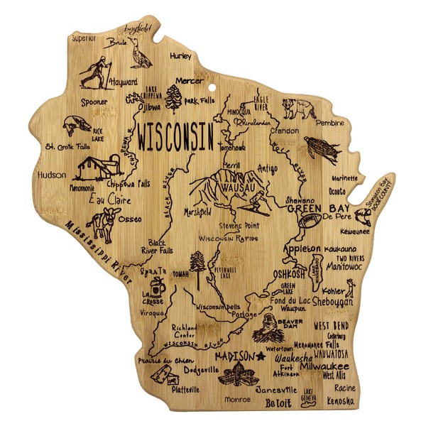 - UNIQUE WISCONSIN SHAPE: Celebrate life in America's Dairyland with this beautifully crafted bamboo cutting board cut to the shape of Wisconsin