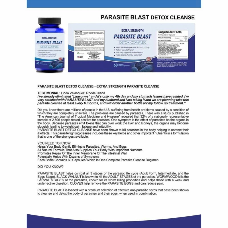 Did you know there are millions of people in the U.S. suffering from health problems caused by a condition of which they are completely unaware. The problems are caused by parasites. There was a study published in 'The American Journal of Tropical Medicine and Hygiene' revealed that 32 percent of a nationally representative sample of 2,896 people tested positive for parasites. One symptom is the effect of parasites on the organs in the body. Because parasites emit toxins that can over work the liver and kidneys, the organs may become sluggish leading to weight gain, fatigue and irritability. PARASITE BLAST DETOX CLEANSE have been shown to kill parasites in the body helping to reverse their ill effects. This parasite fighting cleanse includes these key herbs and other important nutrients in a formulation that is one of the strongest available.