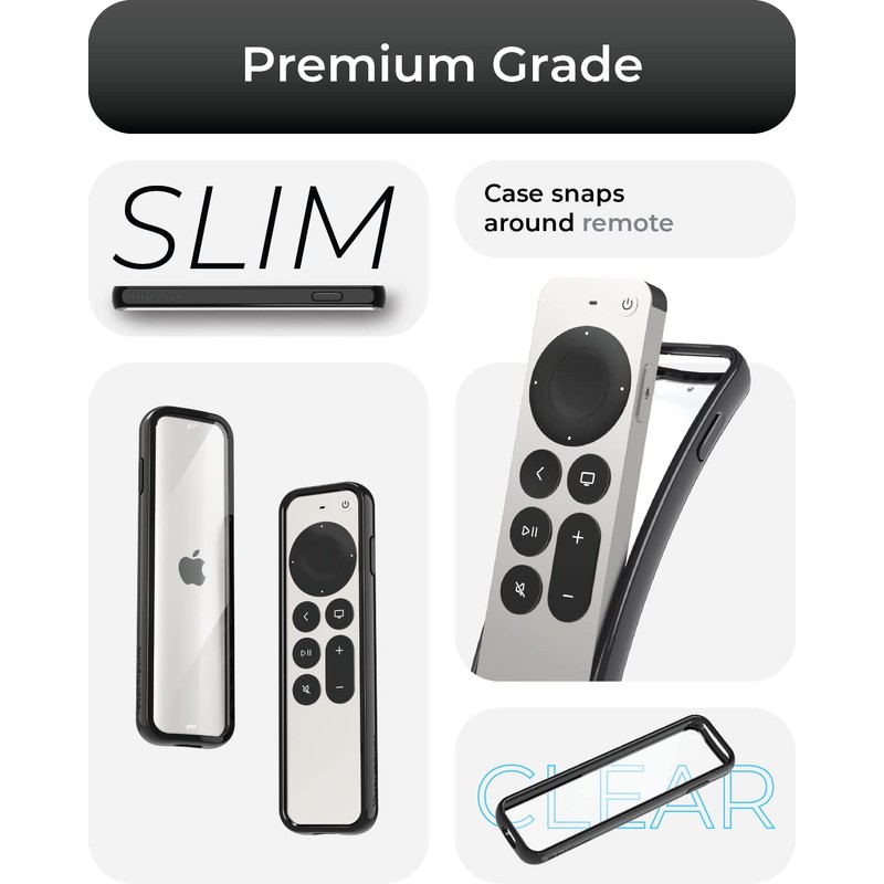 - SLIM – Hybrid case with a flexible perimeter cover and a clear, rigid back provides the drop protection you need while showcasing the premium aluminum housing of the Apple TV Remote. (Apple TV Remote is not included.)