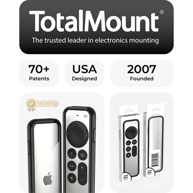 TotalMount Air Rim Case for Apple TV Remotes – Slim, Hybrid Black Perimeter Cover & Clear Back Remote Case with Ultimate Drop Protection
