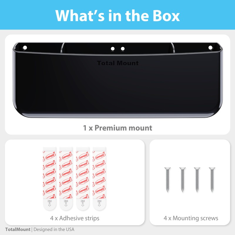 TotalMount TotalMount Hole-Free Remote Holder – Eliminates the Need to Drill Holes in Your Wall (Premium Black Remote Control Holder for 5 or 6 Remotes)