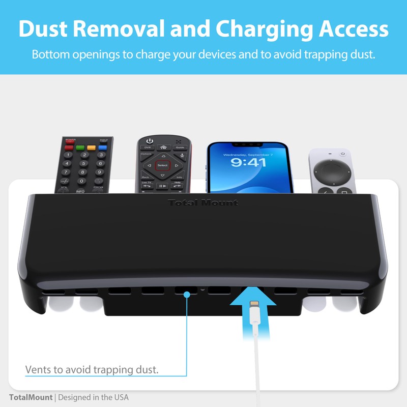 TotalMount Hole-Free Remote Holder – Eliminates the Need to Drill Holes in Your Wall (Premium Black Remote Control Holder for 5 or 6 Remotes)
