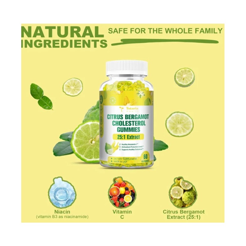 totaria ✨ Citrus Bergamot Gummies 25:1 Extract Cholesterol Support Italian No Sugar