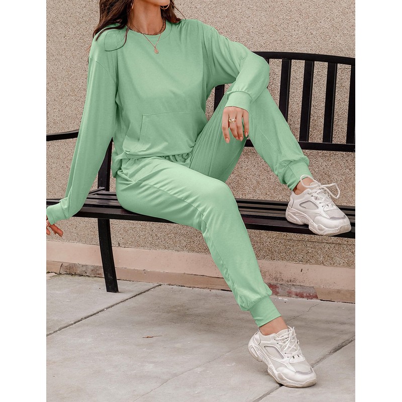 Totatuit 2 Piece Outfits Women's Tracksuits Casual Soft Cotton Ladies Loungewear Set Summer Long Sleeve Top and Bottoms Full Set for Sport Fruit Green M