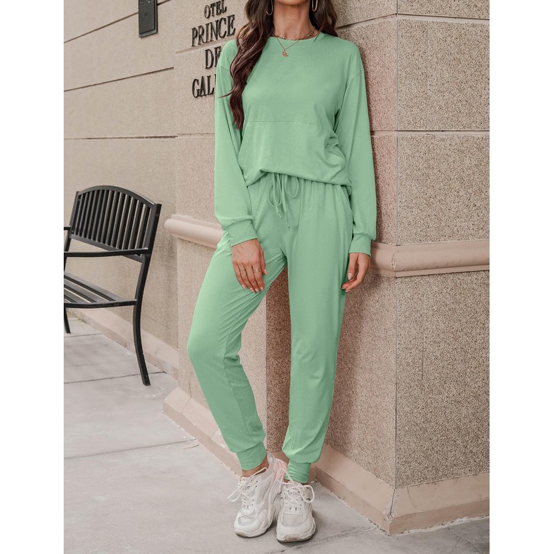 Totatuit 2 Piece Outfits Women's Tracksuits Casual Soft Cotton Ladies Loungewear Set Summer Long Sleeve Top and Bottoms Full Set for Sport Fruit Green M