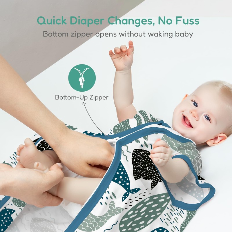 - ๐๐จ๐ญ๐ญ๐จ๐ฆ-๐๐ข๐ฉ ๐๐จ๐ซ ๐ ๐ฎ๐ฌ๐ฌ-๐ ๐ซ๐๐ ๐๐ก๐๐ง๐ ๐๐ฌ: One-way zipper opens from the bottom for quick diaper changes without fully undressing your baby. Zipper guard and soft top flap protect delicate skin from rubbing or irritation during rest.