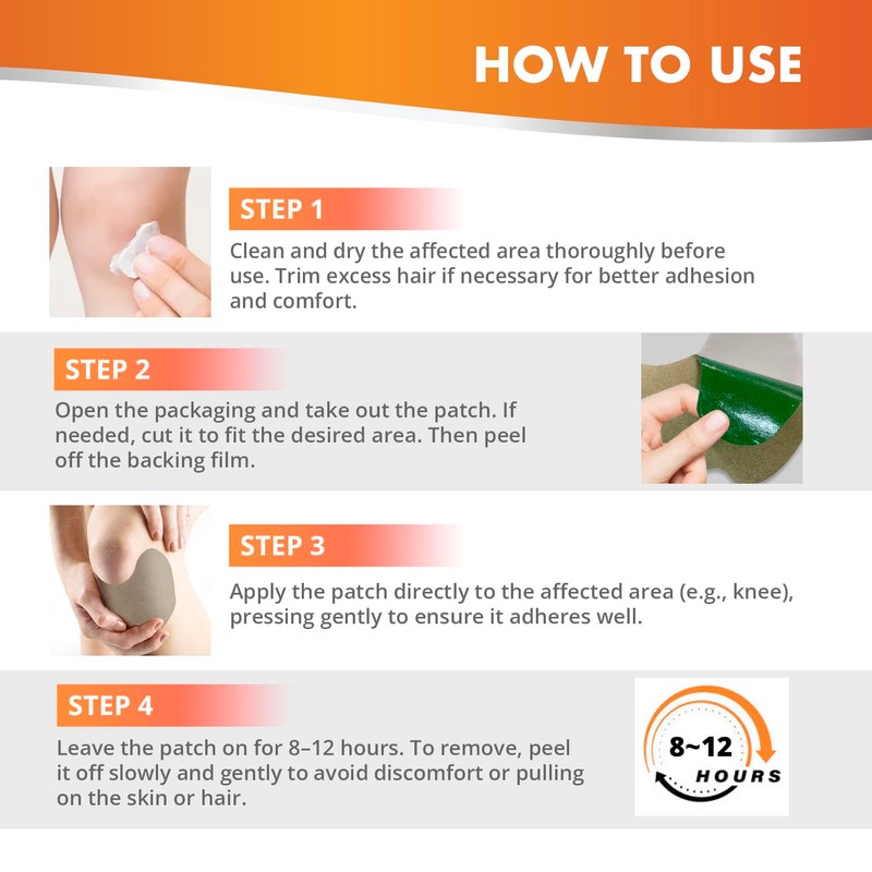 - 【Easy to Use】- Simply cleanse the affected skin with warm water, remove the protective film after drying the skin, and apply TOTCLEAR Knee Patch to the targeted area. Use for 8-12 hours per application. For the same area, wait at least 4 hours before reapplication.