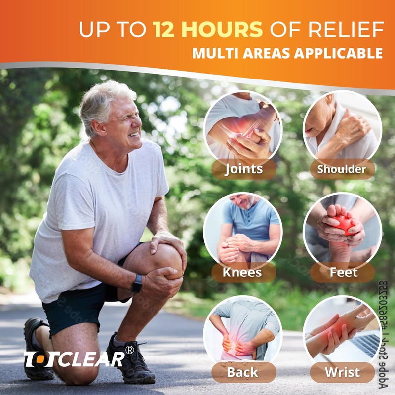 TOTCLEAR Knee Relief Patches is designed for versatile use on various parts of the body, offering fast and effective comfort for your most uncomfortable areas. Apply it wherever you need support: