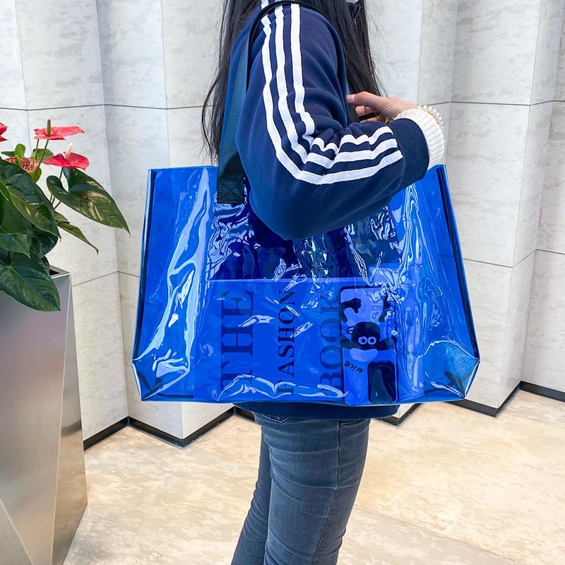 TotePrint - Bolsa grande transparente para el hombro, versátil, impermeable, resistente a las manchas, transparente, Azul, 18.89x11.81x3.94inch