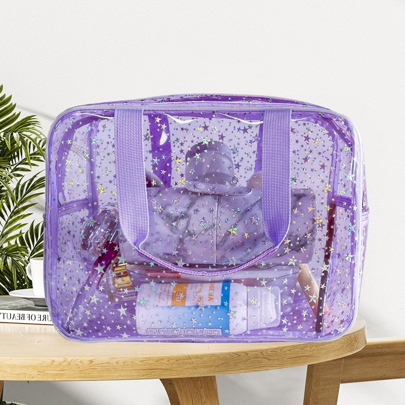 TotePrint Clear Light Purple Star Cosmetic Bag and Travel Pouch with Handle,Durable PVC Material,Zipper Design-Ideal for Makeup,Travel Essentials
