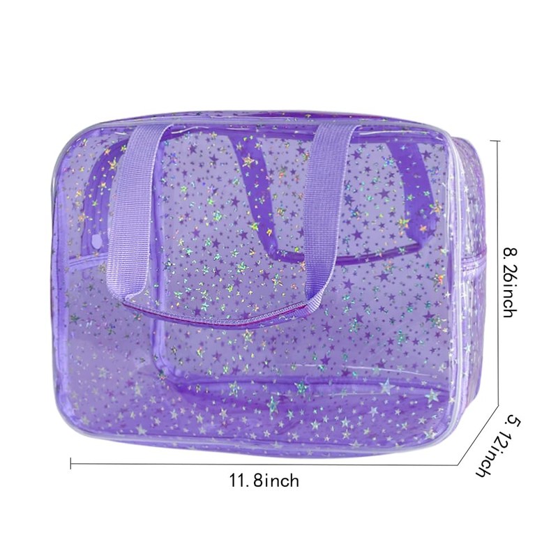 • đŸŒ·ă€Portable and Stylish】:Our convenient light purple star makeup bag measures11.81x5.12x8.26inches in size, and the transparent material allows for easy visibility of internal items. Convenient for you to quickly find and retrieve items, bringing you more convenience