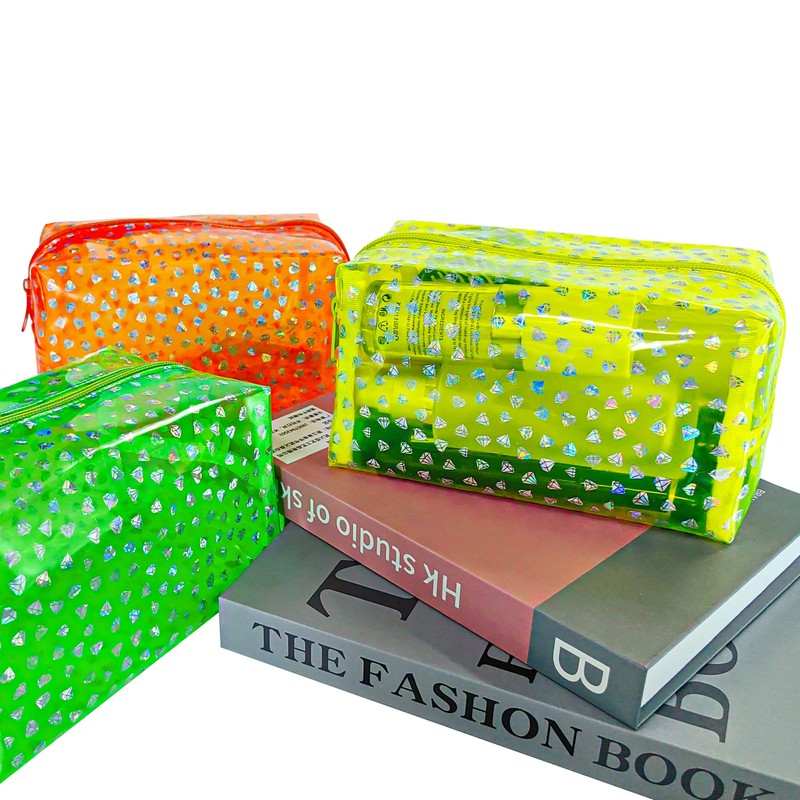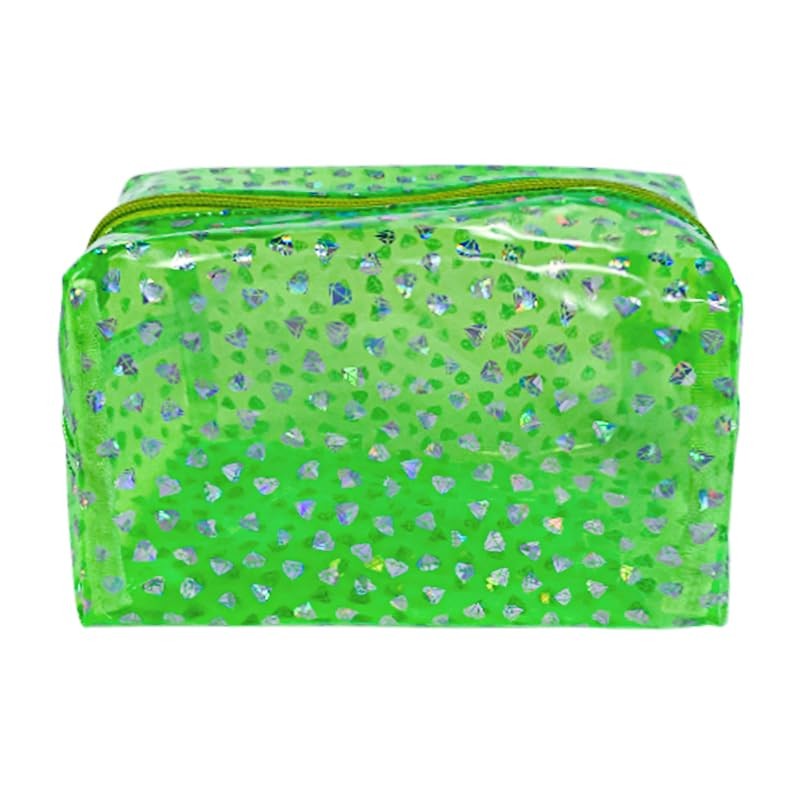 TotePrint Waterproof Transparent Makeup Bag Shiny Diamond Pattern Bag 2pcs, Green, Modern