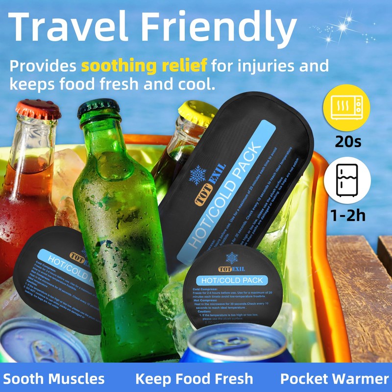 - DUAL HOT & COLD THERAPY: Totexil reusable ice packs for injuries are perfect for hot and cold compress, providing soothing relief for injuries and pain, relieving muscle soreness, crampy, and increasing blood circulation. Just frozen in the refrigerator or heated in the microwave, you can easily switch the different therapy according your treatment need. Make recovery convenient and cost-effective.