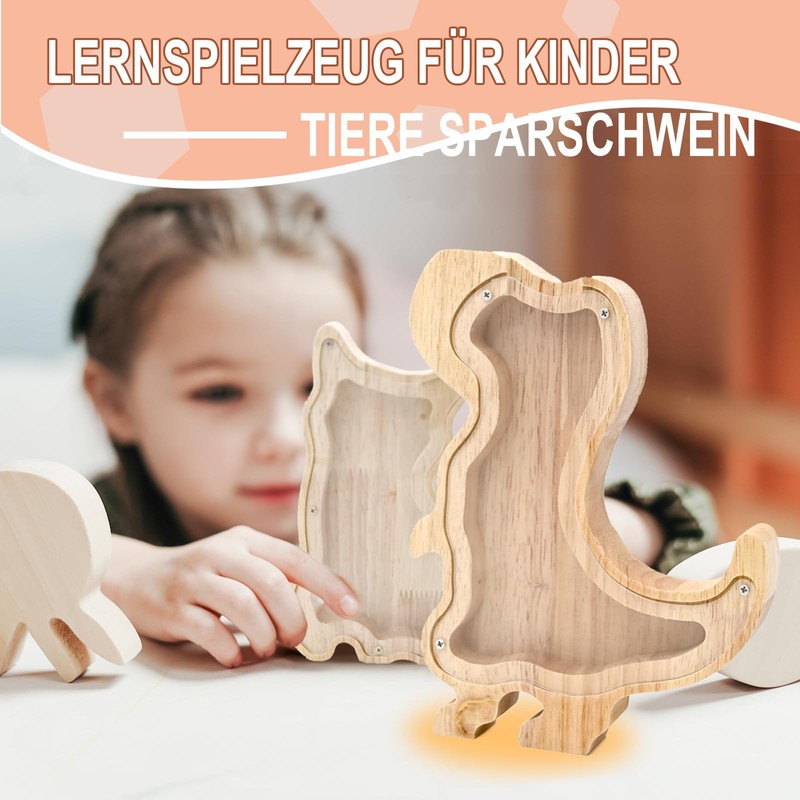 TOTHDATE Wooden Money Box Children Dinosaur Money Box, Animals Money Box with Alphabet Sticker Wooden Coin Bank Kids Boys Home Decor
