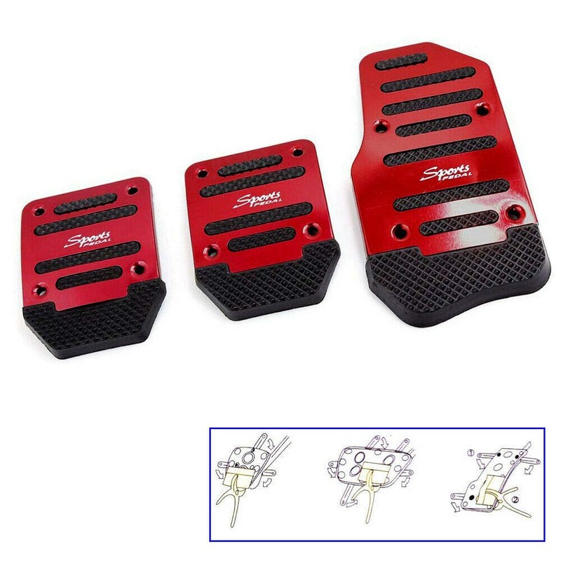 TOTMOX 3Pcs Red Universal Alloy Non-Slip Automatic Car Gas Brake Pedals Pad Foot Cover, Red