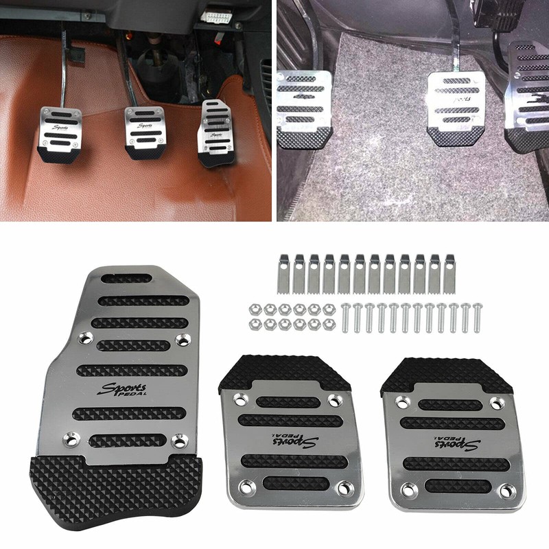 TOTMOX 3Pcs/Set Non-Slip Car Auto Aluminium Foot Treadle Silver Pedals Cover Pad, Silver