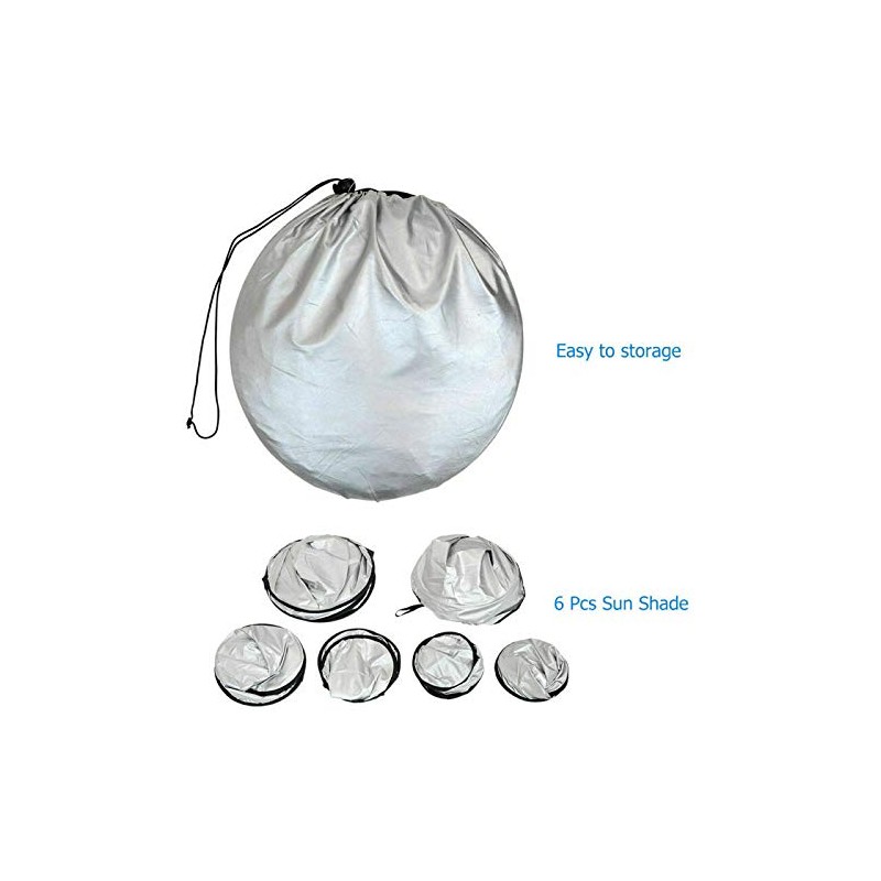 - ▷Comes with 1pc Car Front Sun shade,1pc Car Back Sun shade,2pcs Front side Sun shades,2pcs Back side Sun shades,1pc Storage bag